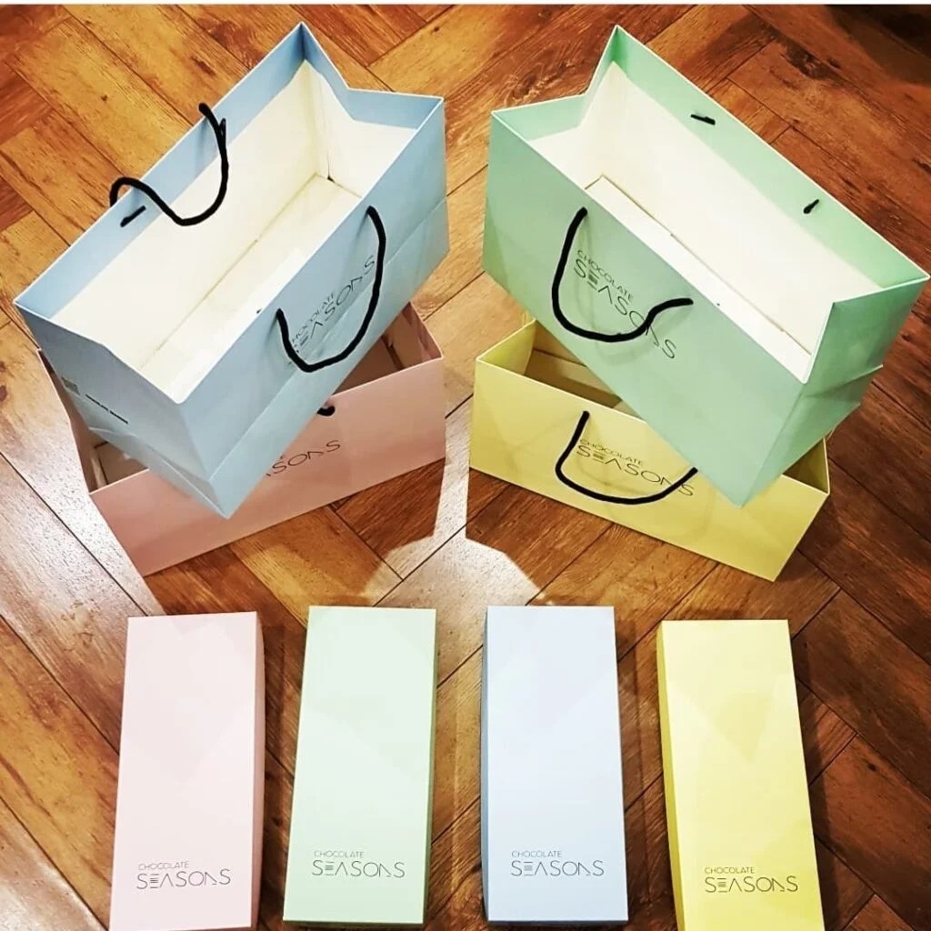 إطبع شعارك على كيس ورقي مقوّى مناسب للحلويات والعبايات وغيرها من الهدايا. كيس ورقي مصنوع من الورق المقوّى بمقاسات مختلفة.